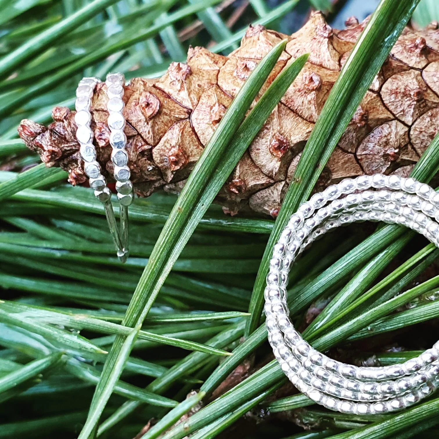 Beautiful paired with the bubble hoop earrings or the flatter bubble ring.